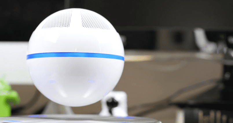 Ice Orb’s design is a bit different from the previous one. This floating Bluetooth speaker is designed with a standalone Orb and a 25mm thick circular base. It has a huge magnet that rotates the beautiful ball in the air. The magnetic base part has a brushed aluminium surface that has a satisfying to touch. This futuristic sound system has red, white and blue lights, which can be changed by the user. The blue LED accent the thing that goes around it. It is very attractive. Actual speakers that are visible on the inside of body will definitely remind you characters from Pokemon.
